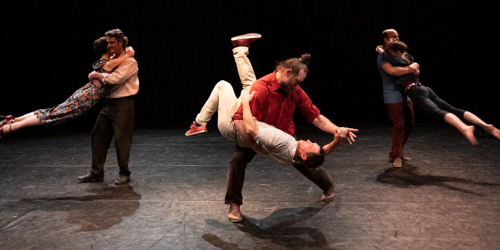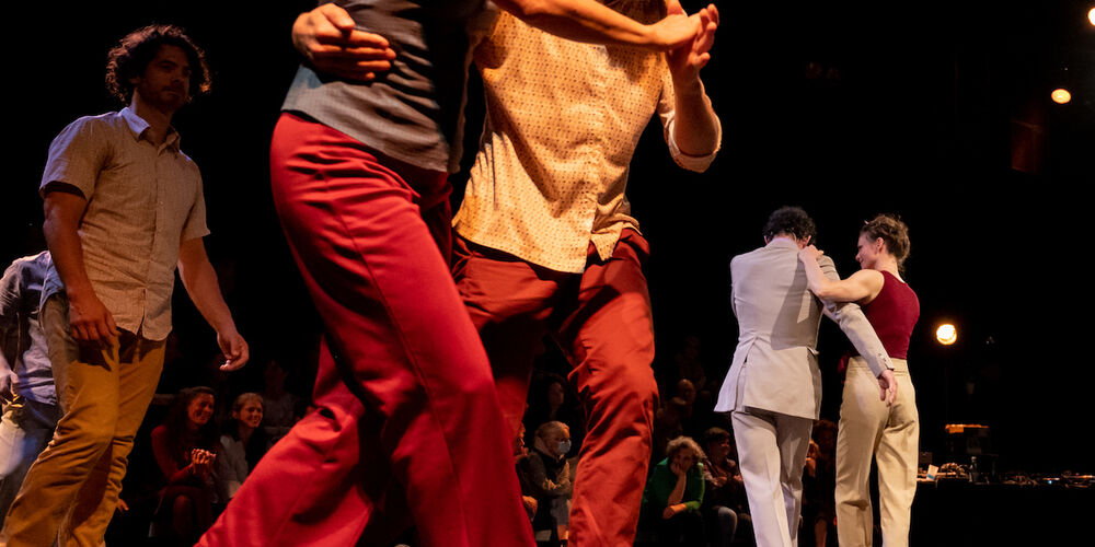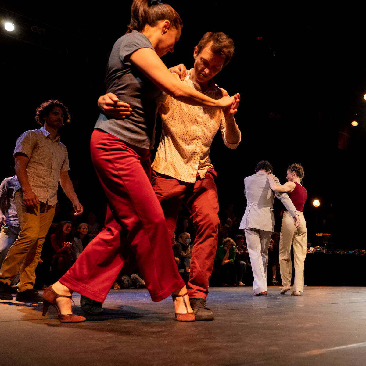 En attendant le grand soir, il y aura à voir et à danser ! Entre bavardages acrobatiques, portés fantaisistes et chorégraphies envolées, la compagnie Le Doux Supplice vous transporte dans un bal populaire endiablé.