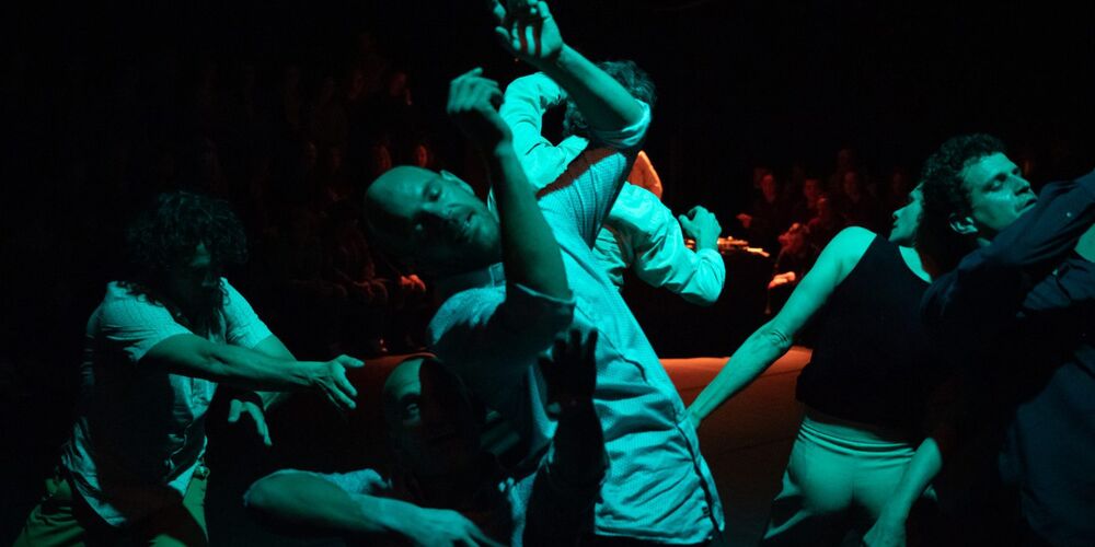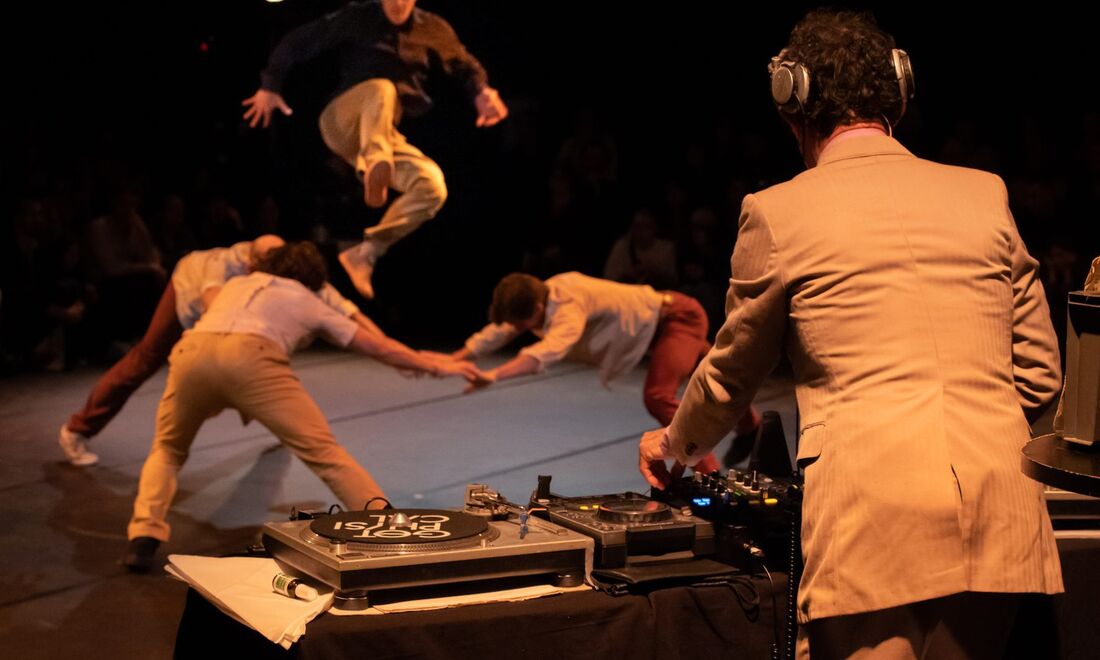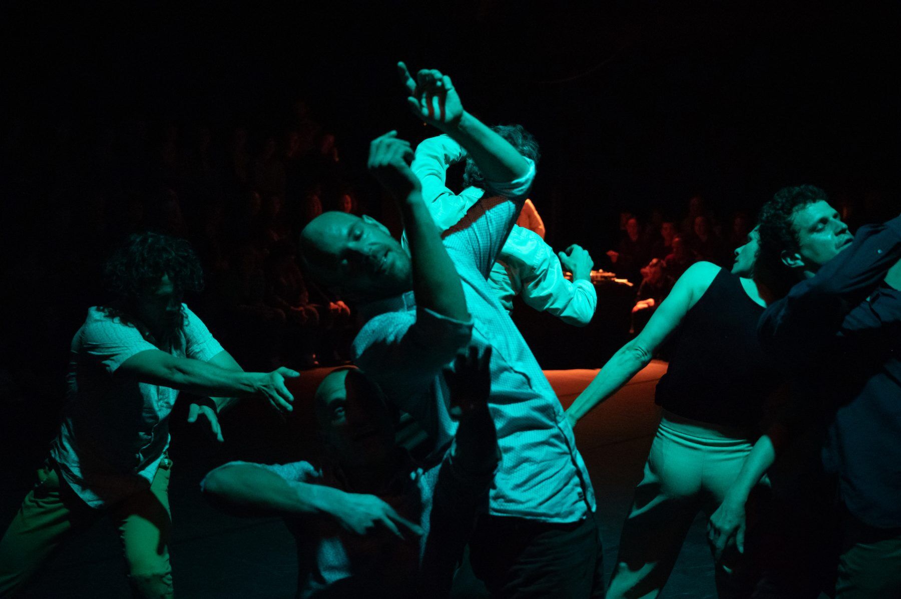 Le public est assis autour du plateau. Au centre, un DJ facétieux, six acrobates et deux danseurs commencent à jouer, à tourner et à défier l’équilibre. Entre tango, rock, valses et jazz, la frontière qui sépare la danse du cirque s’estompe. Peu à peu, sans qu’on s’en rende compte, les acrobates se rapprochent et invitent les spectateurs au mouvement. La frontière entre artistes et public cède à son tour, ouvrant une brèche vers un moment de partage et de générosité contagieuse qui culmine avec un épisode de transe collective. En attendant le grand soir est un délicieux spectacle, c’est aussi une aventure vertigineuse qui sublime le plaisir d’être ensemble.