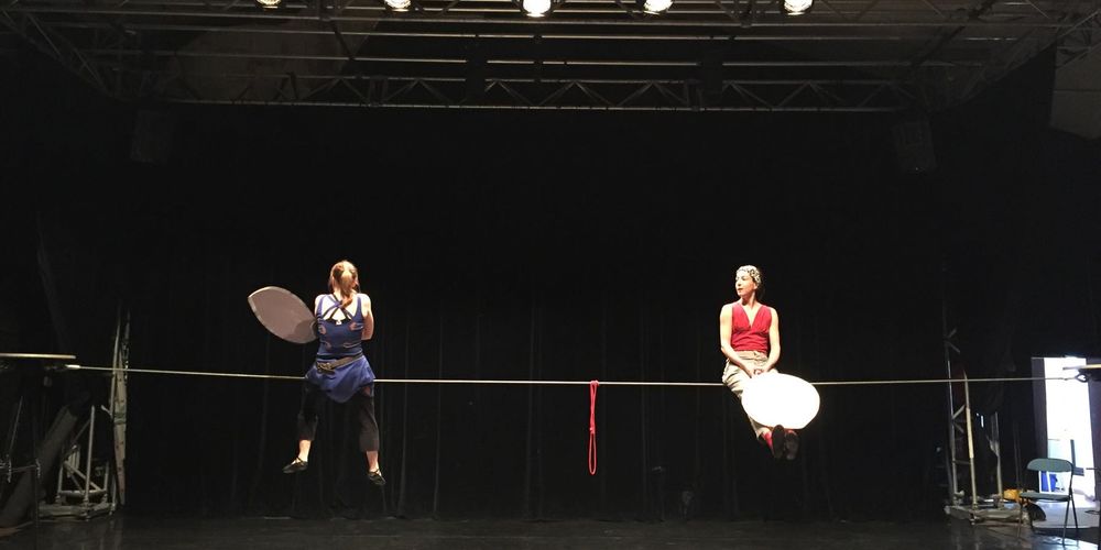 Fanny : La première semaine, le matin, concentration sur la reprise technique sur le fil en solo et à deux, pour retrouver nos marques. Puis l’après-midi, reprise du spectacle que l'on avait morcelé pour la mémoire. Mais aussi voir ce qui fonctionne et ce qui ne fonctionne plus, ce que l’on assume ou ce que l’on assume plus. Et la deuxième semaine nous avons tout repris et avons modifié des choses. Ensuite les derniers jours nous proposons un filage avec la metteuse en scène, qui sera une base de travail pour l’affinage du spectacle.