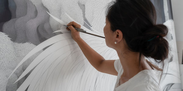 A l’instar de la musique, l’expression visuelle répondra au même procédé de création : une partie préparée et une partie improvisée en temps réel tel un dialogue entre écriture et spontanéité.