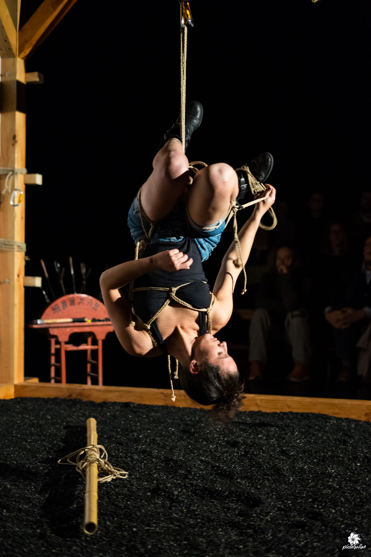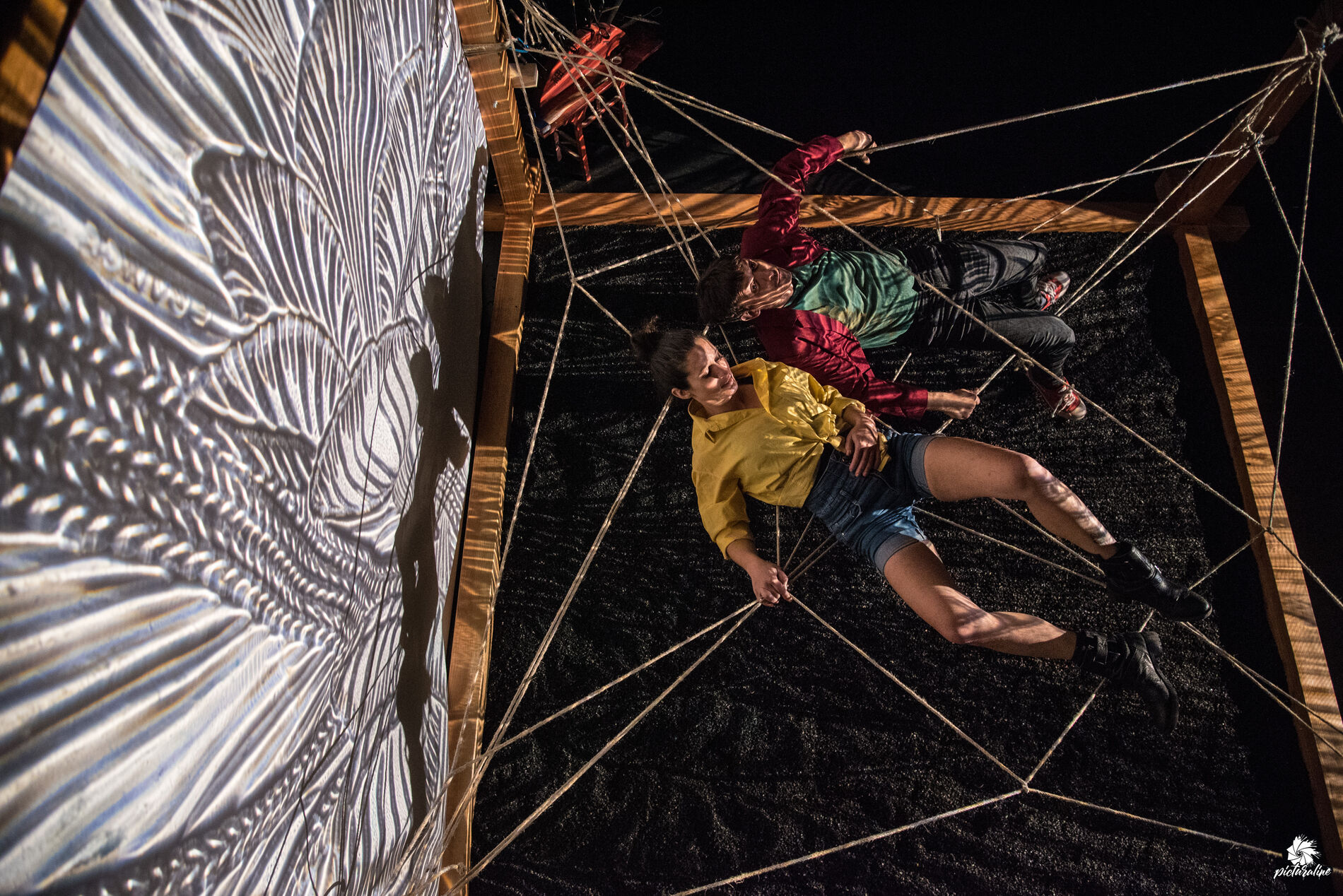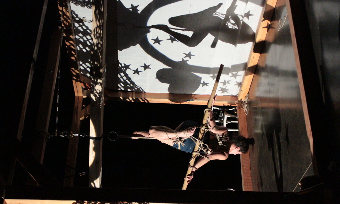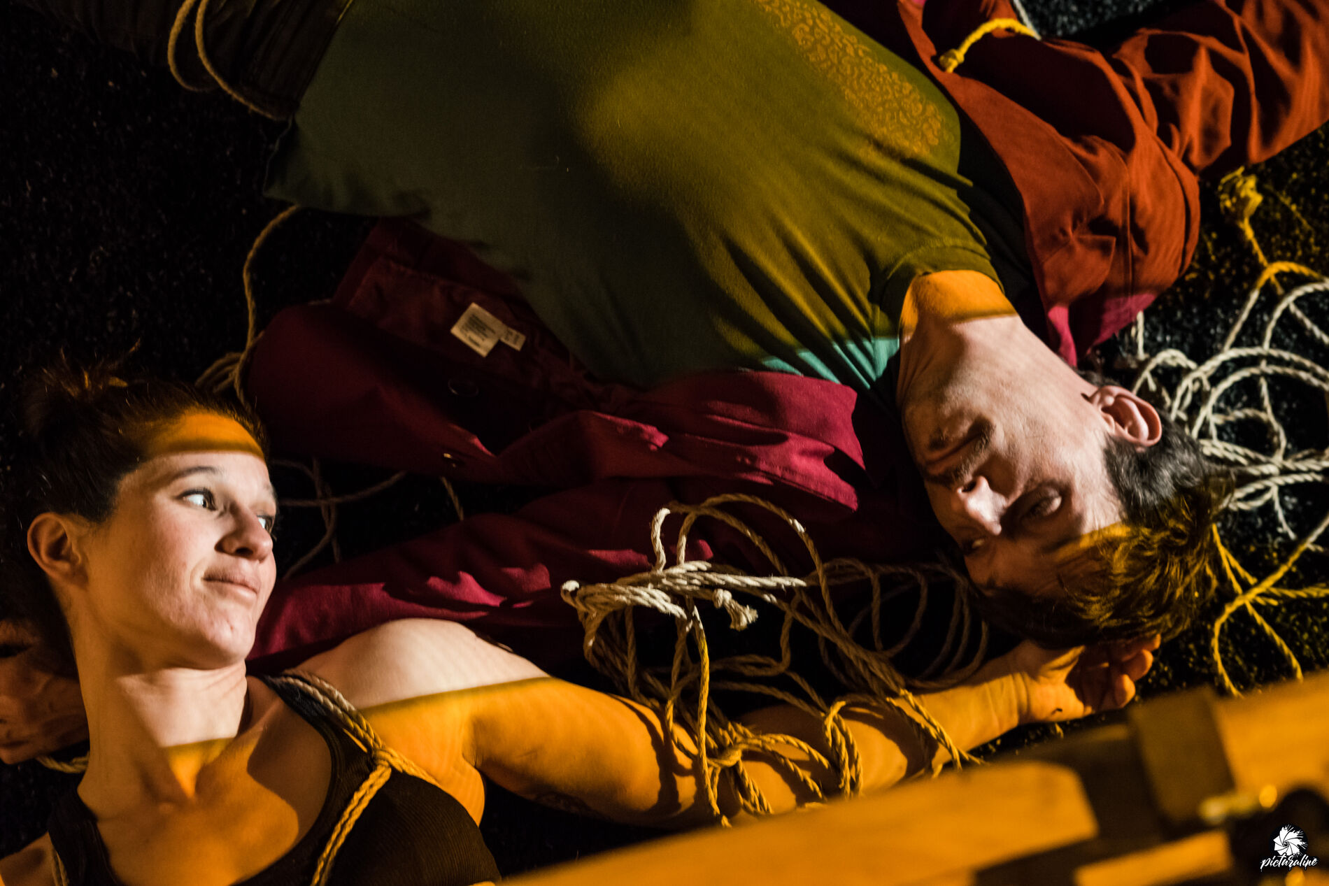 RETENUE crée une expérience artistique dans l’univers symbolique des cordes, un espace ouvert avec le cirque, comme matière à raconter. Elle propose un terrain de jeu, une pièce pour des cordes et des corps ; celui de Lulu Koren et Alex Mino, deux circassien.ne.s qui font du shibari, une évolution de leur pratique. Un voyage à travers les états de la relation à l’autre, ses limites, ses dangers, mais aussi ses plaisirs avec toujours en fond le consentement comme évidence. Une ligne de partage entre nos désirs de liberté et de notre consentement aux contraintes. Les cordes sont une prolongation d’eux-mêmes : un dialogue intime, un lien.
